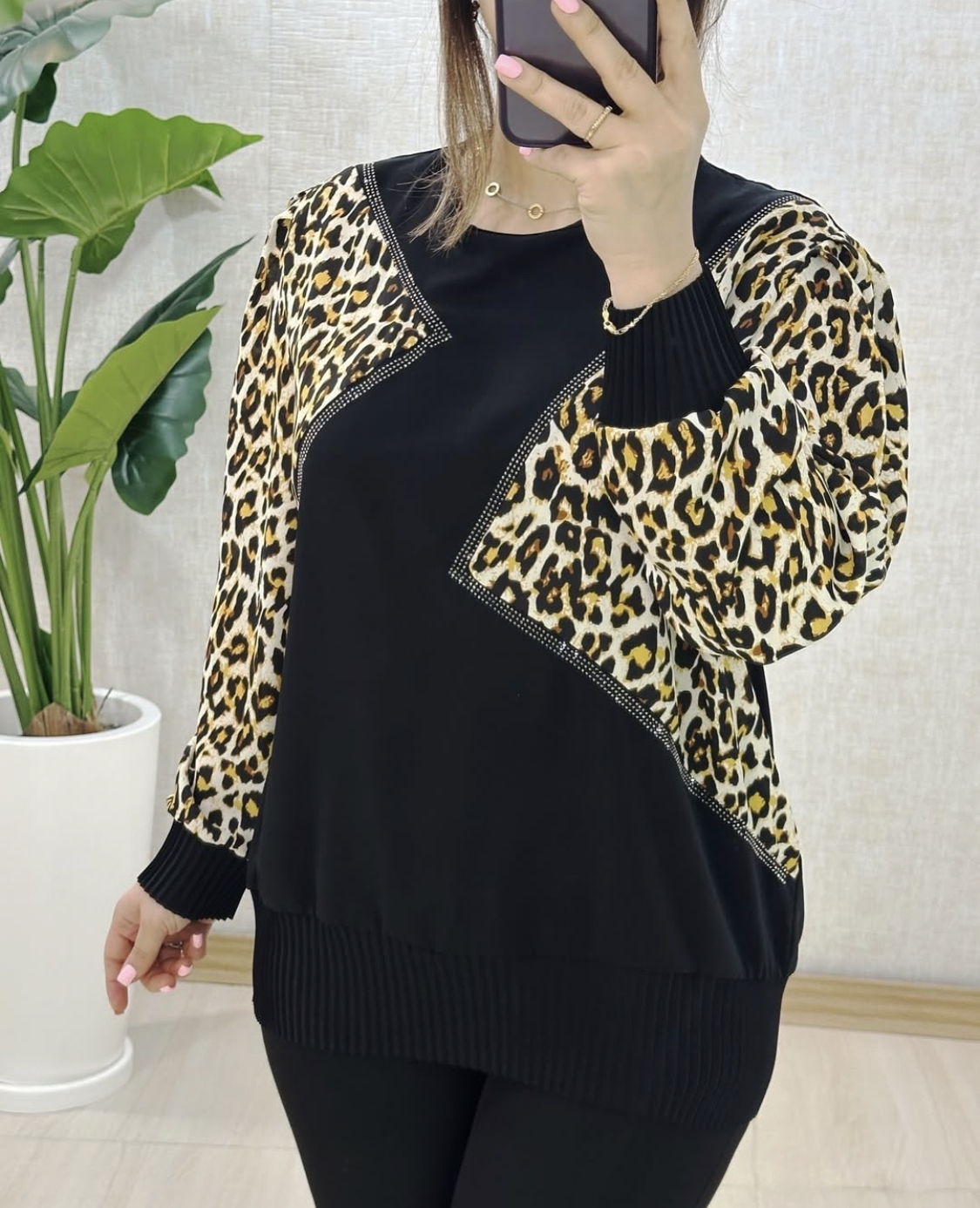 شومیز ترکیبی پلنگی _ کد 1015