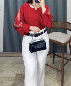 شومیز استين تور رنگبندی : قرمز ، سفید ،سبز ،‌پنککی،بادمجونی ، مشكي